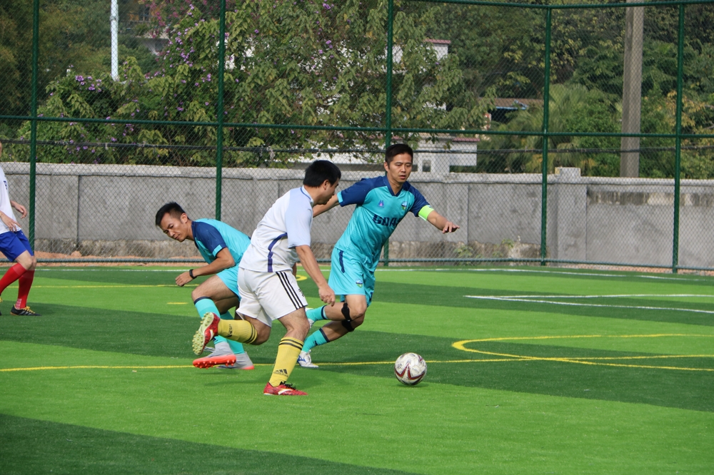我司足球代表队参加了省科学院长兴园区足球场的启用活动