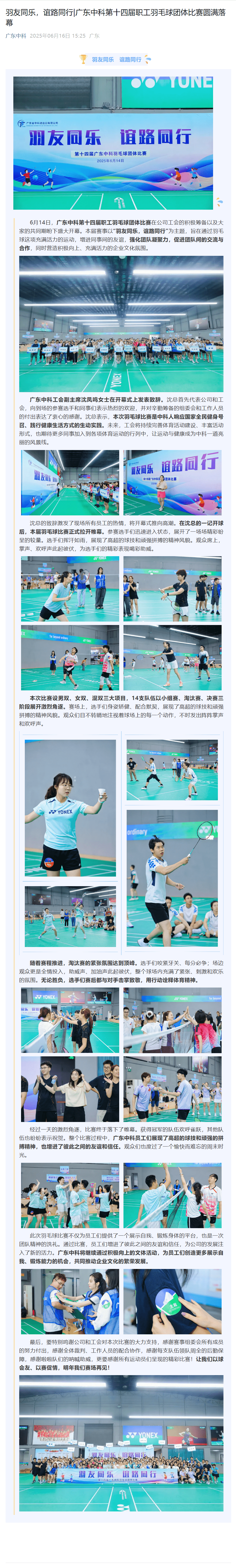 羽友同乐,谊路同行|广东华体会在线开户-华体会(中国) 第十四届职工羽毛球团体比赛圆满落幕