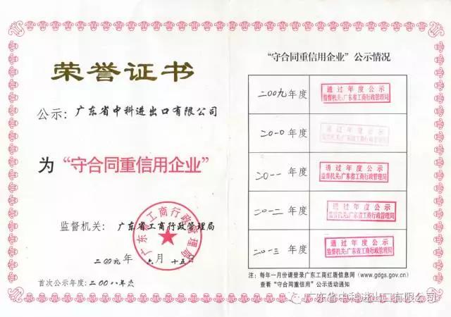 Since our company first applied for and won the title of "guangdong contract abiding and credit worthy enterprise" in 2008, it has won this title for nine consecutive years until 2016. This is the industry and Commerce Department to our company's recognition, but also the majority of customers to our company's recognition.