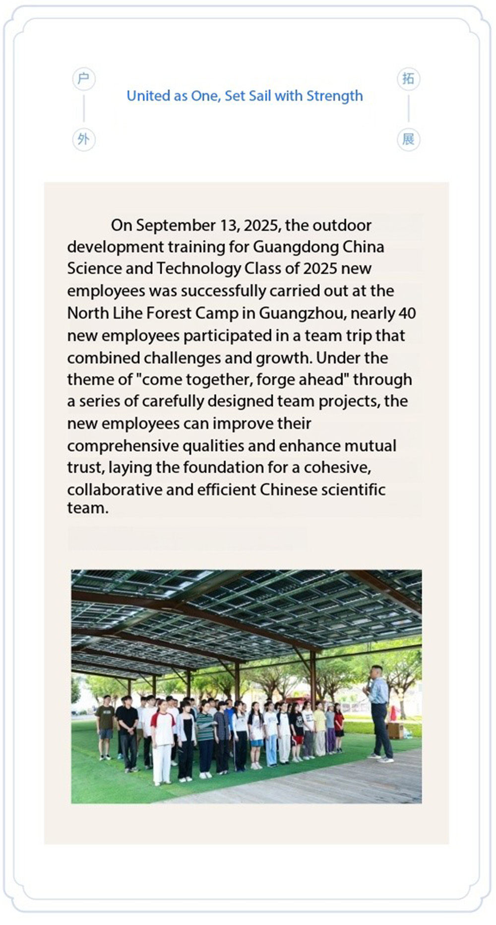 Moving Forward Together, Gathering Strength for Launch 2025 New Employee Expansion Training Successfully Concluded